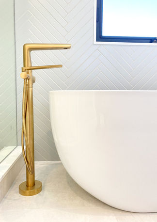 The primary bath in this fully renovated home is the stuff dreams are made of! Can you imagine soaking in the large vessel tub, basking in the sunshine and admiring the subtle glow of brass fixtures? Talk about a room with a view!